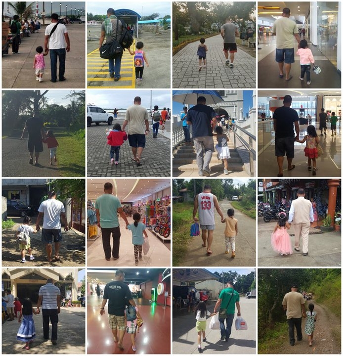 Все изображения были сделаны со спины. На картинках видно, как отец постоянно держит за руку маленькую дочь. Своеобразный фотопроект начался в 2014 году и продолжается до сих пор. Женщина рассказала, что планирует продолжать съемку, пока девочке не исполнится 18 лет или даже пока та не выйдет замуж. После этого мать намерена склеить снимки в видеоролик и подарить ей.