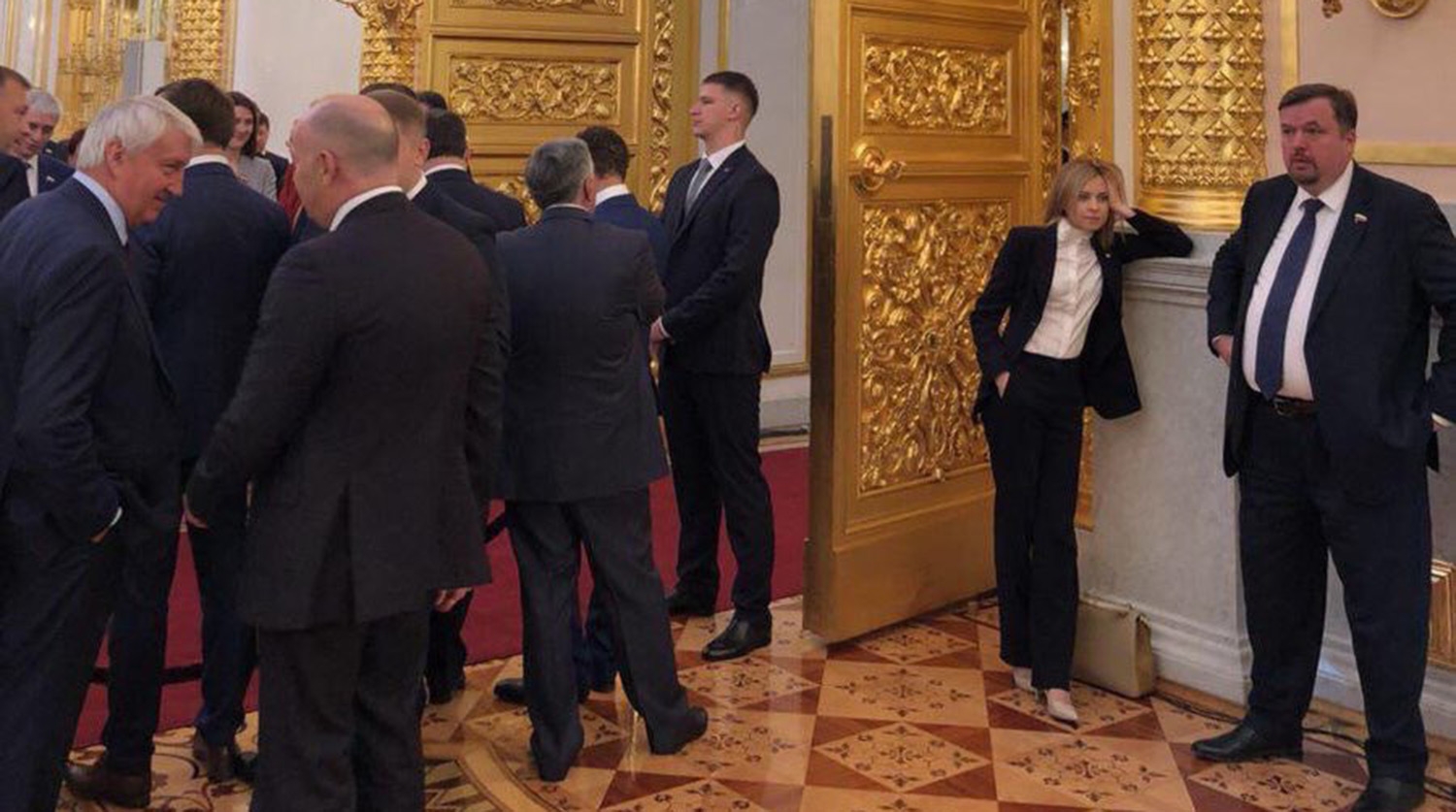 Этот гость, а вернее гостья, — бывший прокурор Крыма и один из символов «Крымской весны», а ныне депутат Государственной Думы Наталья Поклонская. Снимок грустно и задумчиво стоящей около стены в кремлевских интерьерах девушки заметили несколько популярных блогеров и пабликов.
