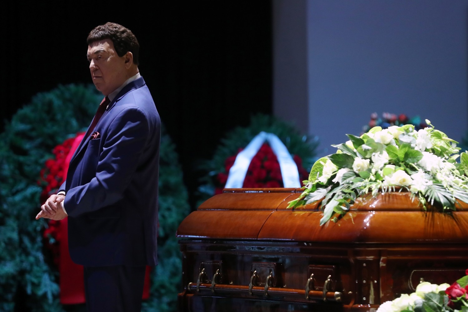 Исхудавший донельзя Кобзон едва держался на ногах у гроба Дементьева