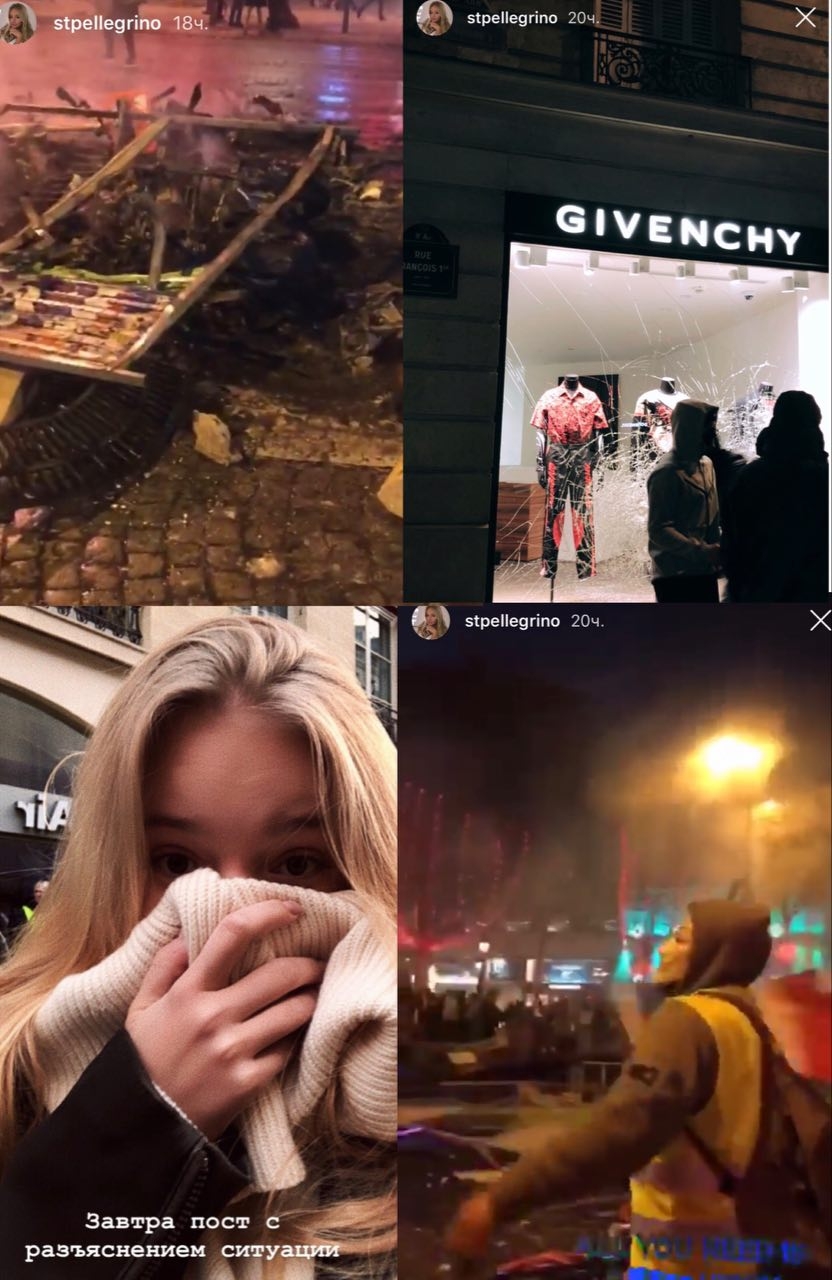 — Нельзя было не стать очевидцем происходящего, находясь в Париже! Black Friday, — пишет Лиза Пескова у себя в Instagram. — Для французов Black weekend в этом году оказался по-настоящему черным. Тысячи демонстрантов в желтых жилетах устроили настоящий шабаш на улицах Парижа и других городов Франции в знак протеста против повышения налога и цен на топливо, а также против политики Макрона в целом.