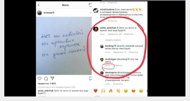 Режиссер написал в соцсетях, что нет ни новостей, ни умных мыслей, на что Собчак заметила: «Зато ты — есть. А значит, все еще будет!» Ее супруг Максим Виторган не преминул съязвить: «Это так мило».