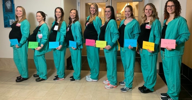 All news organizations seeking information or photos of our expectant nurses may use anything here: https://mainehealth.org/news/2019/03/nine-nurses-experience-their-own-baby-boom