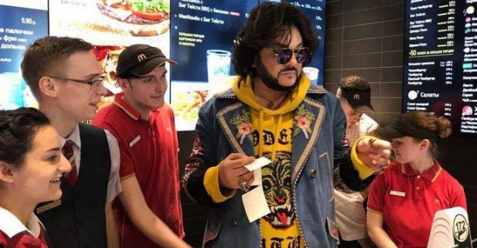 «Вот так встреча, Филя! Решили зайти в мак, а тут такое. На самом деле, наверное, трудно быть публичной персоной, столько внимания вокруг себя. Бедолага, так и непонятно зачем заезжал перед концертом. Думаю, вряд ли ради того, чтобы перекусить чизбургером», — написала девушка, опубликовавшая на своей странице в Instagram ролик с Киркоровым.