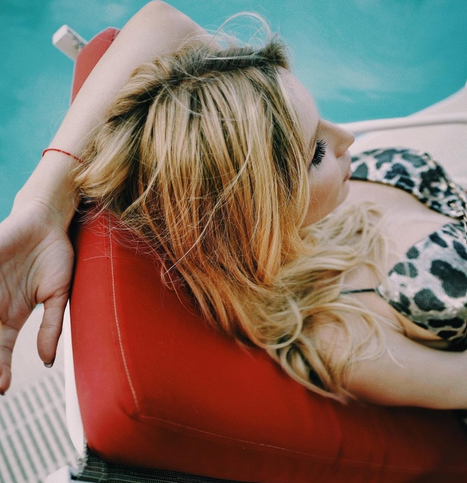 С удачного и эффектного ракурса можно рассмотреть декольте знаменитости, а также полюбоваться ее длинными ресницами и ниспадающим на плечи каскадом длинных белокурых локонов.