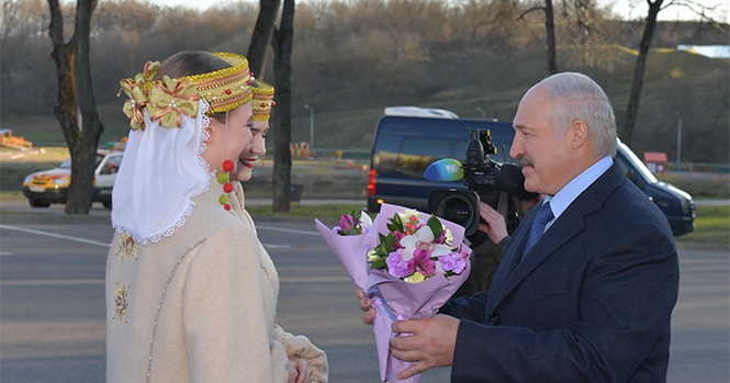 Лукашенко пощупал за пальто встречавших его в Витебске девушек