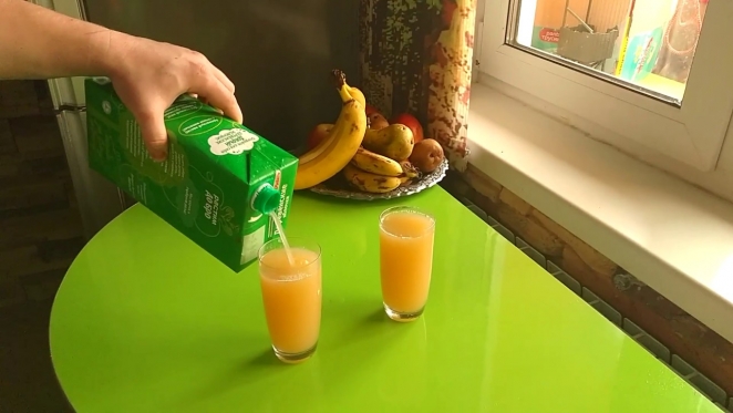 Наливайте сок наоборот. Если наливать сок так, как показано на картинке, то это поможет не расплескать его.