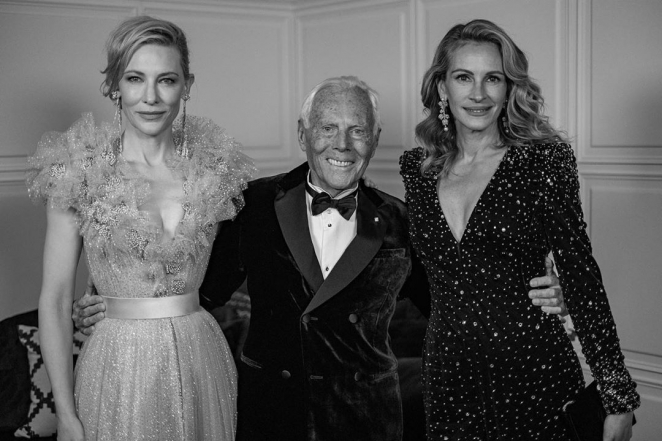 Кейт Бланшетт, Джорджио Армани и Джулия Робертс (фото: instagram.com/britishfashioncouncil)
