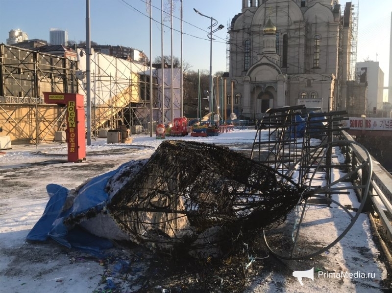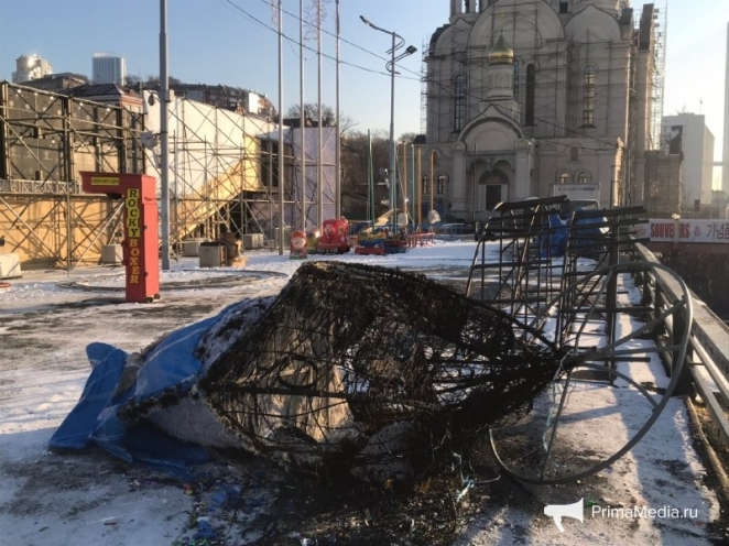 Утром 1 января на площадь пришли участники костюмированного забега. Они и обнаружили, что дорогостоящая конструкция теперь не только сломана, но и сожжена.