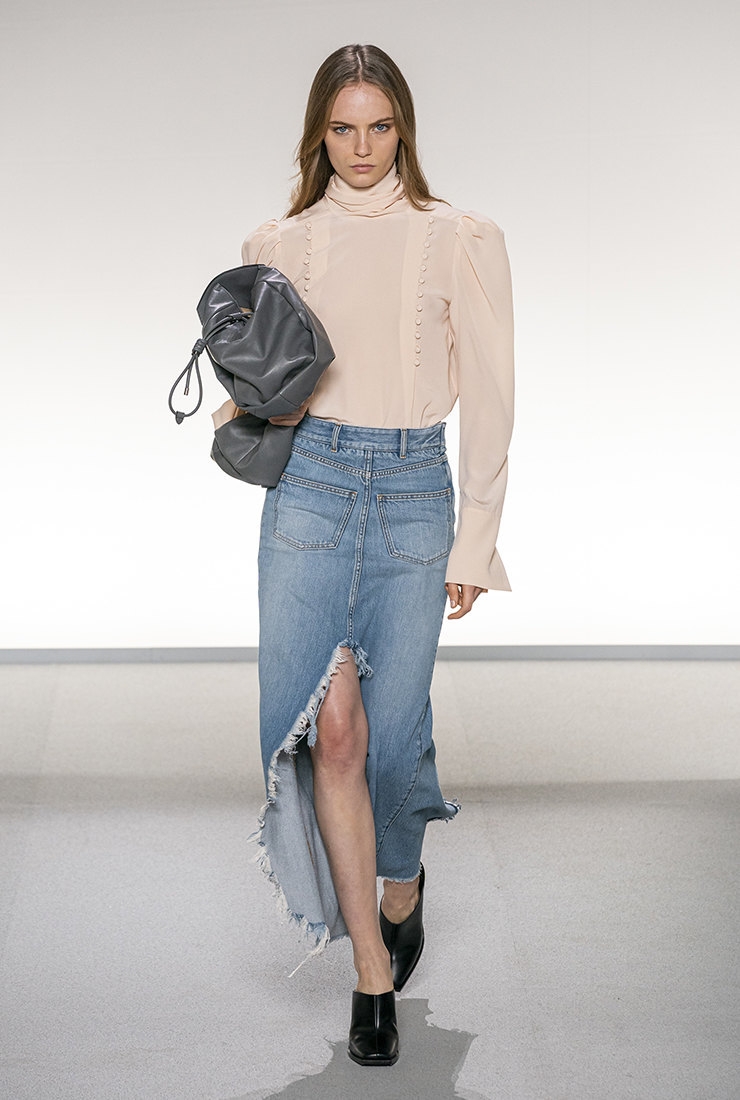 Так, на показе Stella McCartney был продемонстрирован классический вариант с прозрачным топом и строгим оверсайз-жакетом. Givenchy создали довольно нежный романтичный образ со светлой юбкой, а также с нежно-розовой блузкой в викторианском стиле. А вот креативный директор Celine предложила носить пышную джинсовую юбку с изысканным верхом, добавив множество золотых украшений.