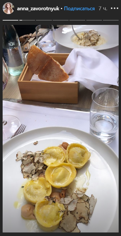 24-летняя Анна Заворотнюк показала, как ест трюфели в ресторане и гуляет по городу.