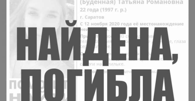 12 ноября 2020 года в Саратове начались поиски Кузьмич Татьяны Романовны 1997 года рождения. Молодая девушка из Фрунзенского района областного центра ушла из дома в черной короткой шубе, светло-голубых джинсах и черных высоких сапогах на шпильке.