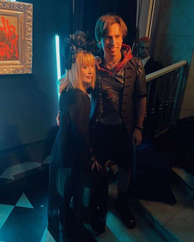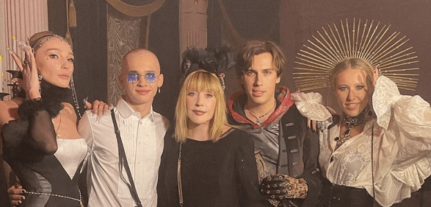 Мероприятие прошло в стиле кибер-барокко. 71-летняя Примадонна пришла на вечеринку в эффектной шляпке, черной прозрачной тунике и мини-шортах. На Максиме был костюм, похожий на рыцарский.