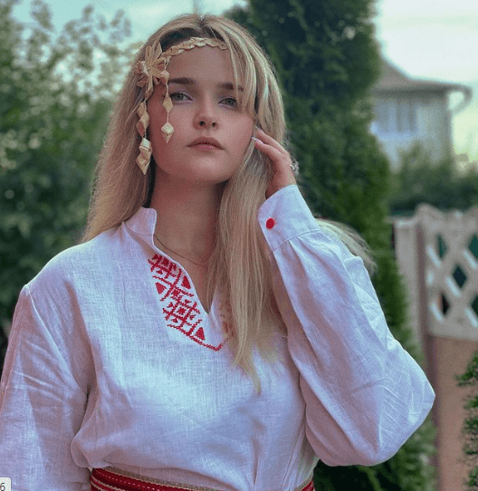 В аккаунте девушки есть и фото в рубашке с национальным орнаментом.