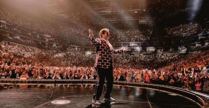 Элтон Джон поет перед многотысячной аудиторией на О2-Арене в Лондоне. Фото из его инстаграма