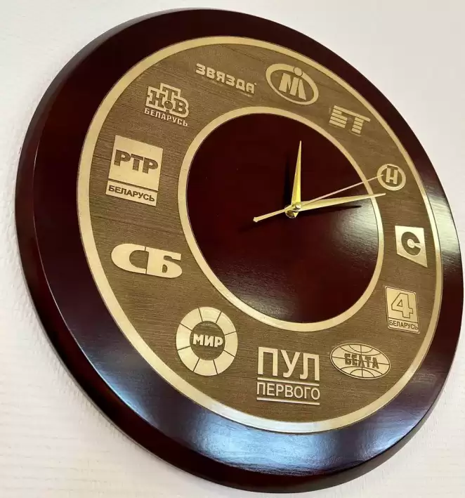 На циферблате размещены логотипы главных рупоров пропаганды как Беларуси, так и России. Отмечается, что они были созданы под «чутким руководством» беларусских чиновников из Мининформации.