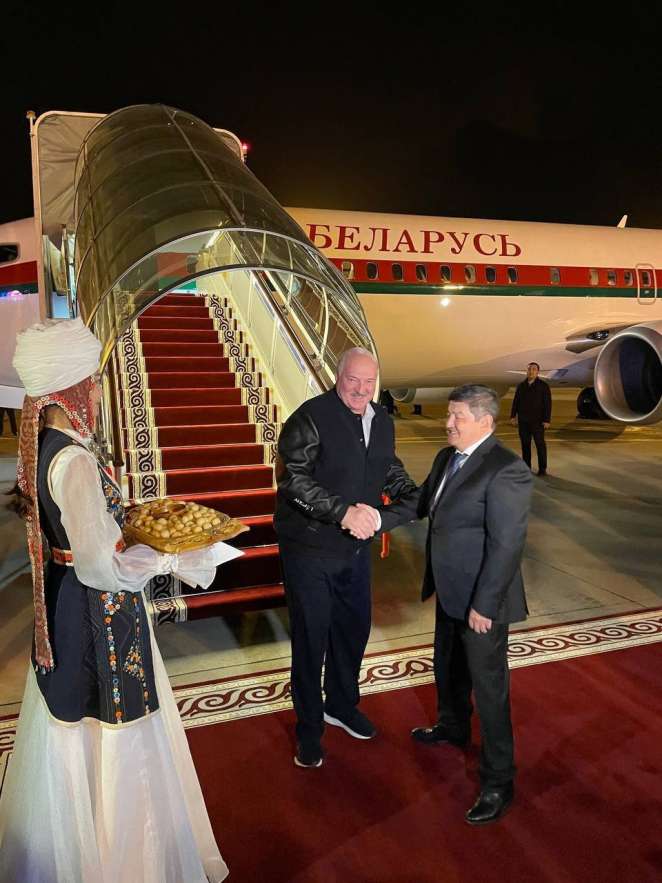 Лукашенко прилетел в Кыргызстан в спортивном костюме