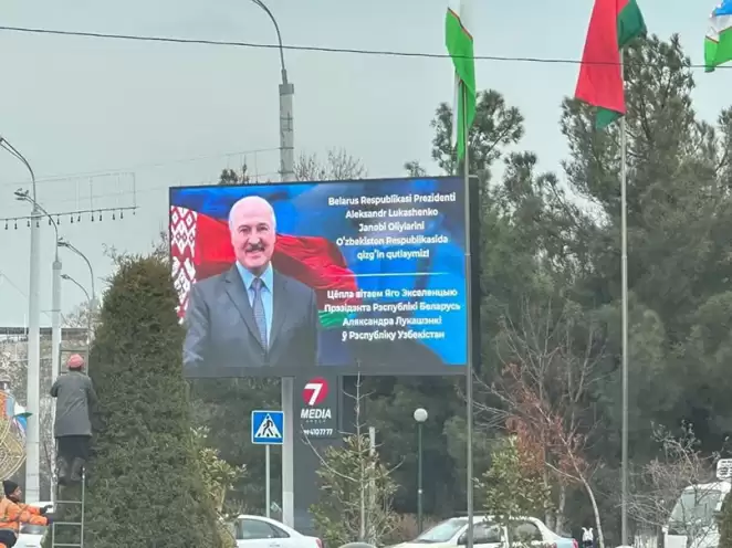 В Ташкенте готовятся к прилету Александра Лукашенко — канал «Открытый Узбекистан» опубликовал фото билборда с приветствием «яго экселенцыі», размещенное на одной из городских улиц.