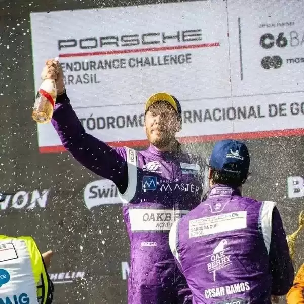 Мужчина занимается автомобильными гонками — в Бразилии участвует в Кубке вызова «Порше» (белоруска как раз мечтает о такой машине) в качестве пилота. Если верить специализированным сайтам, у него случались и победы.