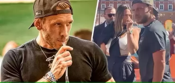 С ней из машины тогда вышел мужчина с очень характерными татуировками.Такие же татуировки на руке того, кто обнимает спортсменку в Мадриде.