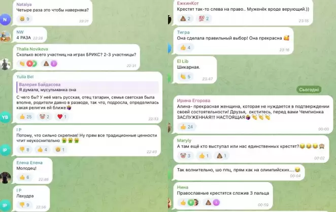 Россияне обратили внимание, что «христианка» неправильно выполняет жест, ведь держать в таком положении нужно три пальца. Кроме этого, она начертила крест в направлении спортсменки четыре раза.