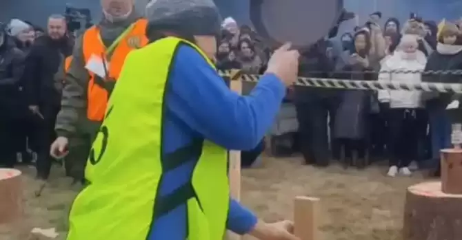 Пропагандистки перед Лукашенко кололи дрова сковородками
