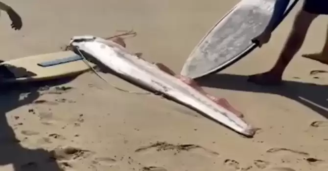 Вероятно, сельдяного короля вынесло на берег после встречи с морским хищником. Рыбу перенесли в воду с помощью досок для серфинга, но неизвестно, смогла ли она выжить.