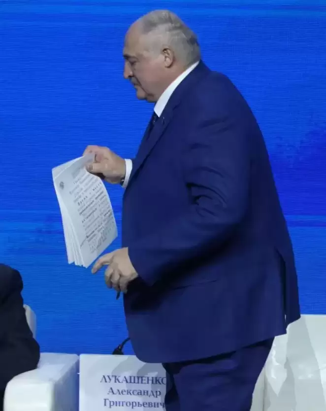 Как показывает фото из Волгограда, тексты речей Лукашенко печатают огромным шрифтом. Вместо того чтобы надеть очки, политик тратит бумагу.