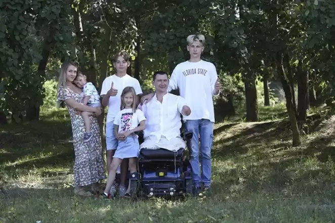Алексей Талай со второй женой Анастасией, их общими детьми и сыновьями от первого брака