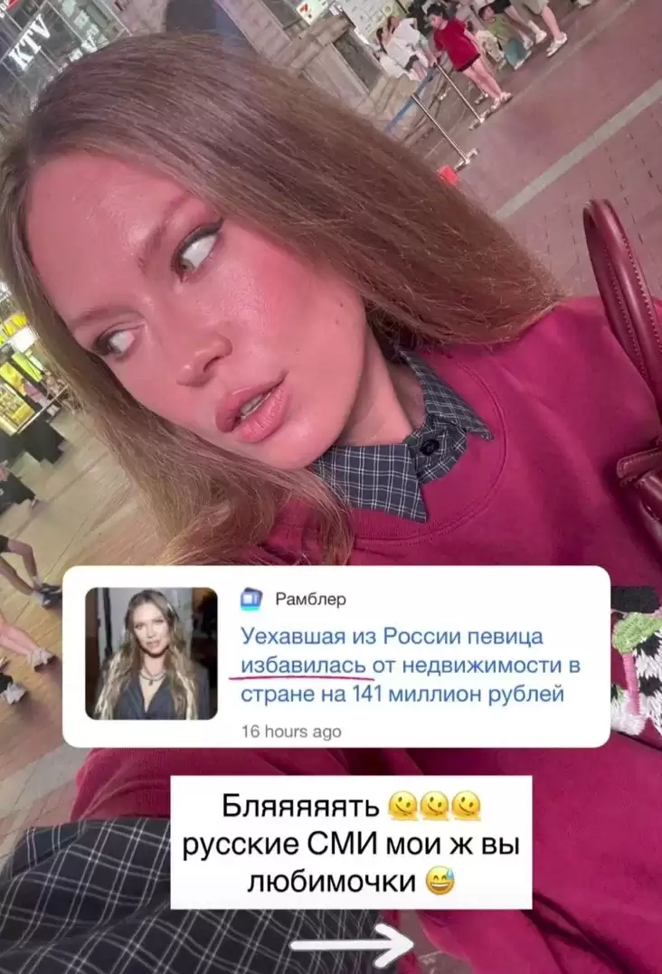 Недавно российские СМИ начали издевательски писать о том, что белорусская певица Рита Дакота (в 2022 году она получила еще и российский паспорт) продала свою недвижимость в России на сумму около $1,75 миллиона. Речь идет о нескольких квартирах и коммерческом помещении. Связывали это с тем, что недавно артистке официально запретили выступать в России, пишет НН.
