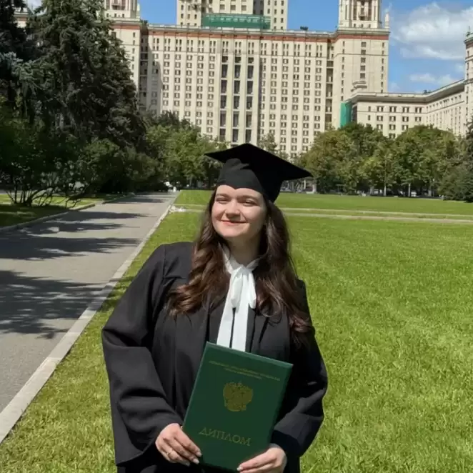 Помимо учебы, Настя участвует в научных соревнованиях. В 2025 году она стала призером заключительного тура универсиады «Ломоносов» по практической юриспруденции. В секции «Интеллектуальные права, искусственный интеллект и цифровые технологии» она набрала 90 баллов — это один из самых высоких результатов среди участников.