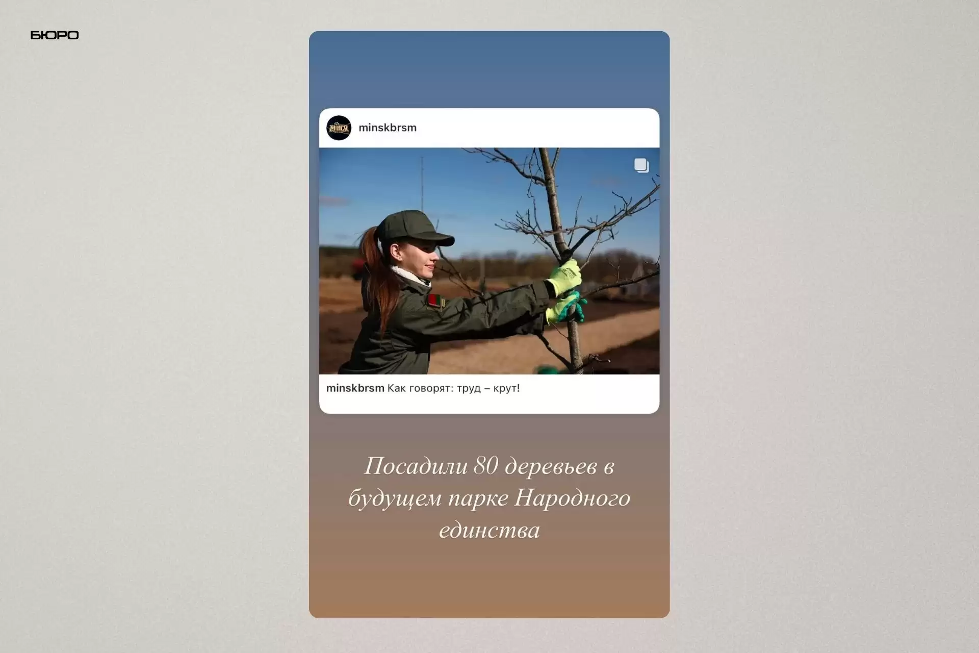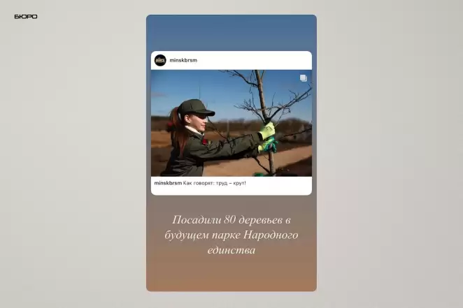 Алия Короткая сажает деревья в будущем парке Народного Единства в Минске, апрель – 2025. Источник: инстаграм-аккаунт Алии Короткой