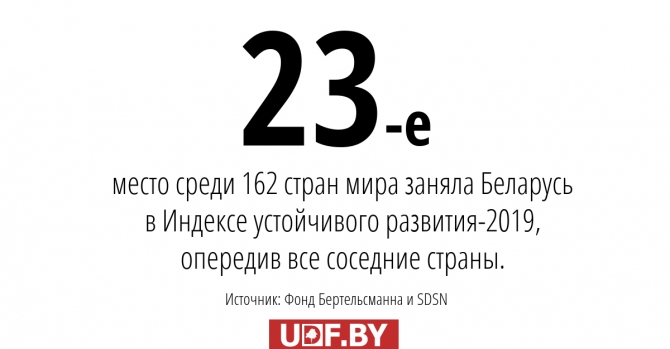 Фонд Бертельсманна и SDSN опубликовали Индекс устойчивого развития стран за 2019 год (SDG Index). В нем собраны достижения 162 стран мира в соответствии с декларированными ООН в 2015 году целями развития до 2030 года. В индексе отражены победы и поражения государств в борьбе с бедностью, соблюдении гендерного равноправия, защите гражданских прав и свобод, обеспечении населения качественными товарами, образовательными и медицинскими услугами.