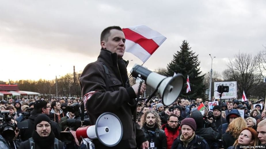 Денис Садовский на акции 15 марта в Минске. Фото: svaboda.org