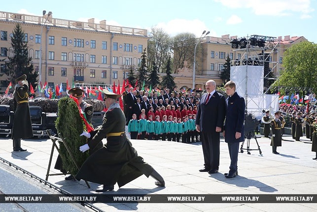 "В нашей истории немало судьбоносных дат. Но 9 мая 1945 года особый день - День Великой Победы. Она завоевана советским народом в самой страшной войне, жестокой войне с фашизмом, - отметил Президент. - Мир был спасен от коричневой чумы огромной ценой. За годы войны Беларусь потеряла треть своего населения. В одном только лагере смерти Тростенец под Минском фашисты истребили свыше 200 тыс. человек. А сколько людей погибло в сожженных карателями деревнях и разрушенных городах?!"