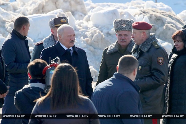 Во время визита Лукашенко сопровождал старший сын Виктор, а также руководство Администрации президента. Всем визитерам показали образцы военной техники, вооружения и специальных средств внутренних войск.