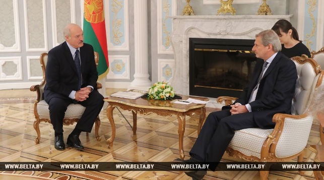 Лукашенко принимает во Дворце независимости еврокомиссара Хана