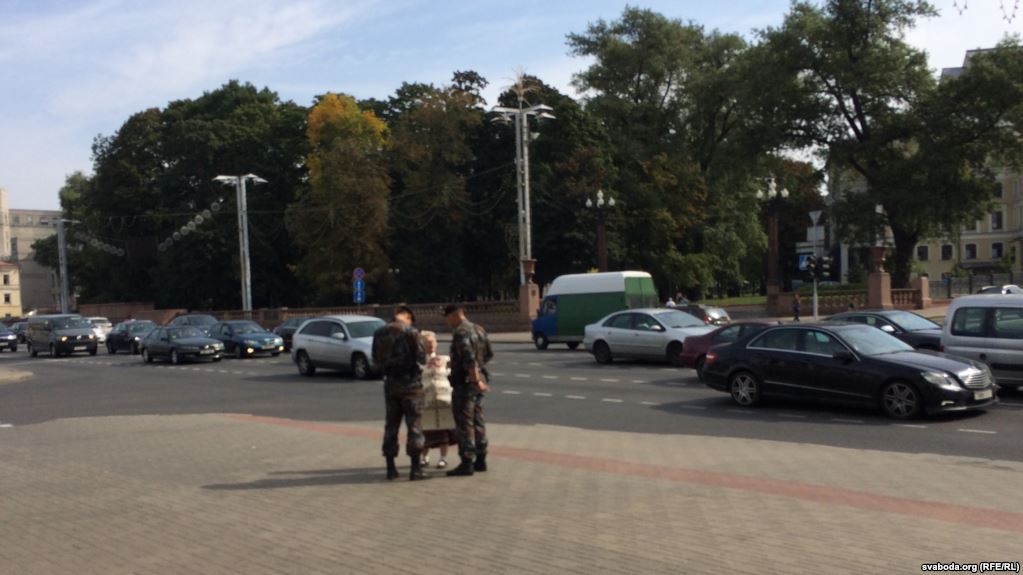 Женщина стояла у метро с плакатом о декоммунизации Беларуси. Вскоре рядом с ней появились два омоновца, один из которых куда-то позвонил. Через несколько минут к ним подъехал синий микроавтобус, куда и сопроводили женщину, передает радио "Свабода".