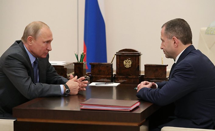 Президент РФ Владимир Путин и посол РФ в Беларуси Михаил Бабич во время встречи. 24 августа 2018. Фото: РИА Новости, Михаил Климентьев
