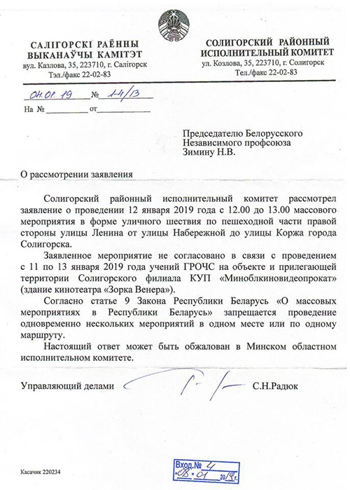 «Когда у властей закончилась фантазия», – прокомментировали в соцсетях ответ исполкома активисты профсоюза. Отметим, что с октября прошлого года чиновники отклонили четыре заявки БНП на шествие и две – на пикет. Причем, подобные причины отказа уже использовались. В их числе: конкурс снежных фигур «Снеговик-фэст», спартакиада в честь 100-летия ВЛКСМ, районная ярмарка, ремонт улицы.