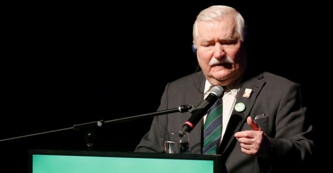 Лех Валенса выступает на саммите в Монтевидео / Reuters