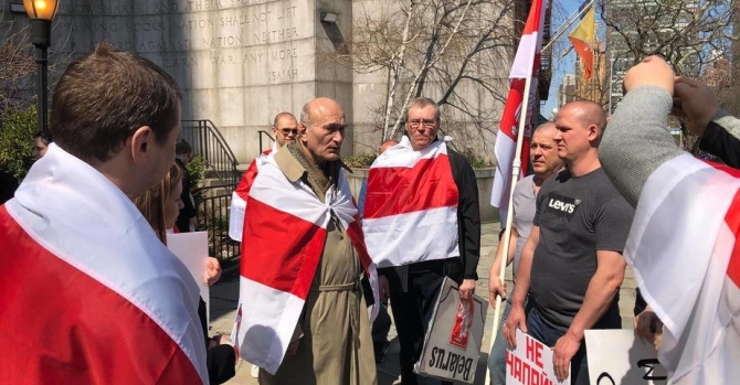 Позняк вышел к зданию ООН в знак протеста против сноса крестов в Куропатах