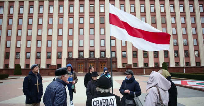 На молебен пришли около 10 человек, сообщает Tut.by.
