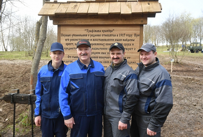 Александр Лукашенко в прошлом году на субботнике вместе с тремя сыновьями работал на благоустройстве Трофимовой криницы на своей малой родине — возле агрогородка Александрия в Могилевской области. Президент пояснил, что это место хотели немного расширить, так как на криницу едет много людей из стран СНГ.