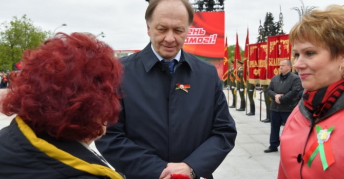 9 мая Владимир Андреев в качестве временного поверенного принял участие в церемонии возложения цветов к Монументу Победы в Минске. Фото: посольство РФ в Минске