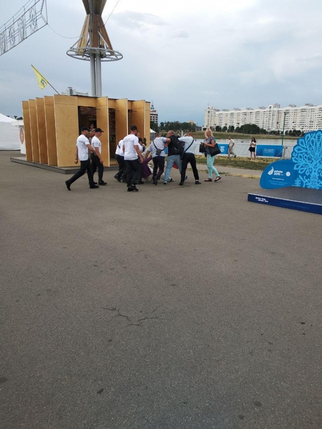 Около 15 активистов «Народнай Грамады» вышли с плакатами «Отстаньте от нас со своей интеграцией», «Путин! Мы не один народ» к фан-зоне Европейских игр. Их задержали.