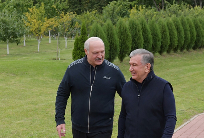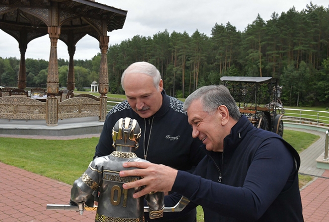 Президенты также пообщались в неформальной обстановке. Причем местом встречи была выбрана резная беседка, которую Мирзиёев подарил Лукашенко в прошлом году после его официального визита в Узбекистан.