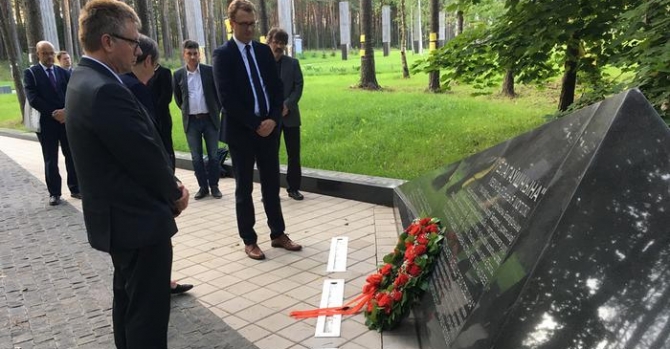 Депутаты бундестага в мемориальном комплексе "Тростенец" в Беларуси