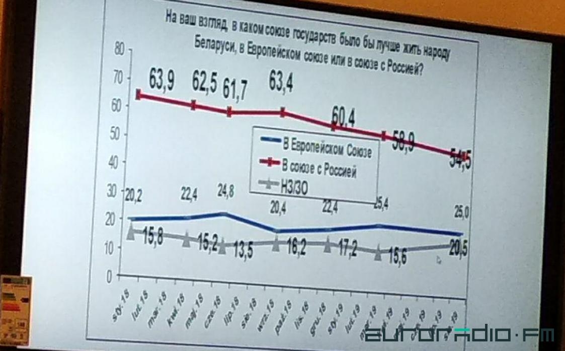 Андрей Вардамацкий: 54,5% белорусов за союз с Россией, 25% — за союз с Европой