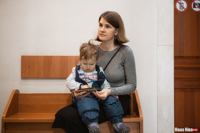 В суде Павел Северинец не присутствовал. С 26 декабря он отбывает 15 суток на Окрестина за участие в акции против интеграции 7 декабря. В суд пришла его жена Ольга с сыном.
