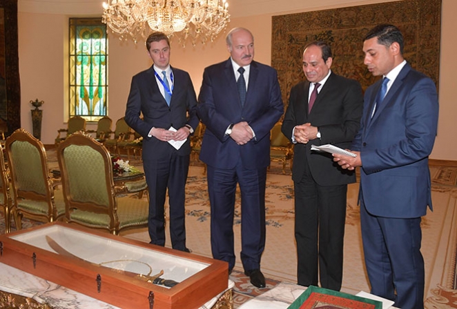 В частности, президент Египта Абдель Фаттах аль-Сиси вручил Александру Лукашенко египетский меч.